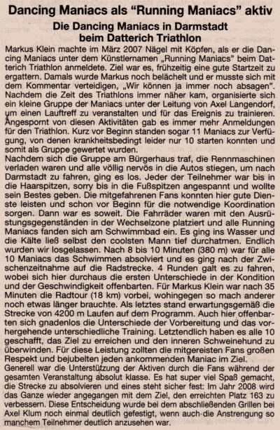 Die Dancing Maniac’s engagieren sich im örtlichen Vereinsleben und gestalten das Kulturelle Leben der Gemeinde mit.